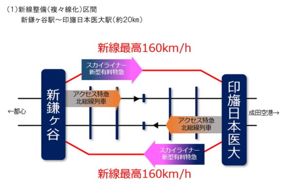 「私鉄最長クラスの複々線」整備検討へ “有料特急専用の線路”を北総線の外側に建設!? 京成が空港アクセス強化 読み込み中... 拡大画像 成田スカイアクセスの複々線化のイメージ(画像:京成電鉄) 拡大画像 現行の特急「スカイライナー」用のAE形(画像:京成電鉄) 関連記事 ファン必見!「バリバリ伝説」ポスター広告が新宿駅に登場 (PR)バイク王 「18きっぷで乗れるフェリー」に10年ぶり新造船投入! 30年選手を置き換え 3月運航開始 キャロウェイの新作「QUANTUM」を試打レビュー! (PR)キャロウェイゴルフ 広島の路面電車の「循環線」開業日が決定! 23年ぶりの新系統に 運行本数は? なぜゼクシオは売れ続けているのか (PR)ダンロップスポーツマーケティング この画像の記事を読む