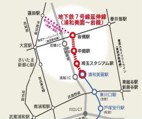 「日本最大のサッカー専用スタジアム」が“新駅直結”に! アクセス改善へ検討加速 現在は最寄り駅から徒歩15分 読み込み中... 拡大画像 埼玉高速鉄道の延伸ルート(画像:さいたま市) 拡大画像 埼玉高速鉄道の延伸ルート(画像:さいたま市) 拡大画像 埼玉スタジアム2002(画像:PIXTA) 関連記事 ファン必見!「バリバリ伝説」ポスター広告が新宿駅に登場 (PR)バイク王 なぜJR東日本の「みどりの窓口」は急減した?「方針凍結」と“話せる券売機”の現実 本間ゴルフ・小川社長が語る“変革の真意” 「TW777」が示す挑戦の第一歩 (PR)本間ゴルフ 品川駅近くで作られてた「巨大な橋のようなもの」がにゅ~んと動いた! 3300トン圧巻の“送り出し”で線路またぐ “本番”はこれから!? なぜゼクシオは売れ続けているのか (PR)ダンロップスポーツマーケティング この画像の記事を読む