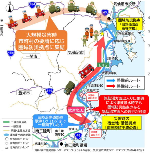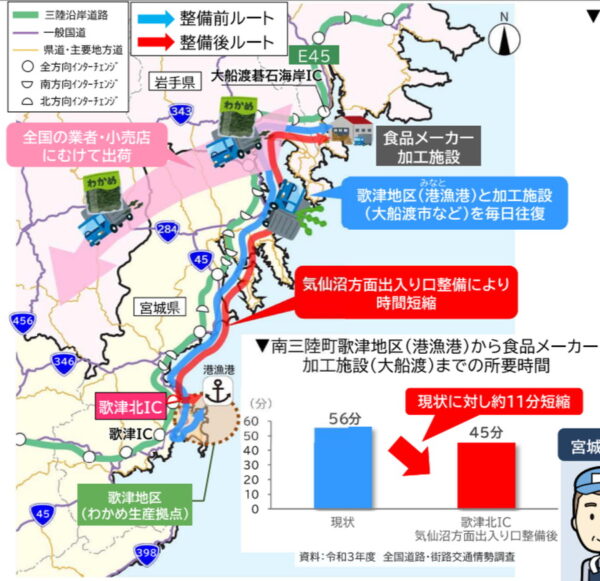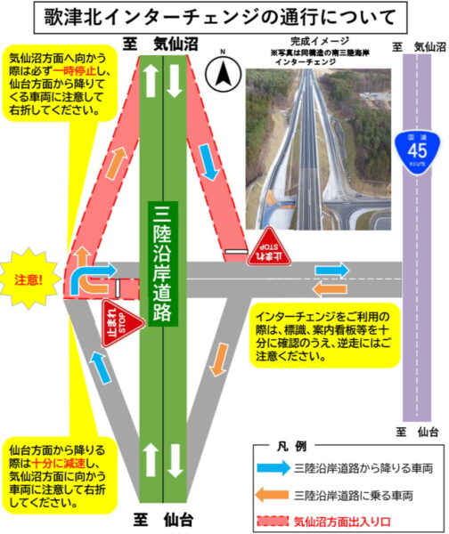 “震災から15年”の朝に「復興道路」が進化! 三陸道のハーフIC“フル化”へ「逆走には注意して」 読み込み中... 拡大画像 フル化される三陸道「歌津北IC」について(画像:南三陸沿岸国道事務所) 拡大画像 フル化される三陸道「歌津北IC」について(画像:南三陸沿岸国道事務所) 拡大画像 フル化される三陸道「歌津北IC」について。気仙沼方面の通行は、三陸道からアクセス道へ乗る方の車両が優先で、入口へ向かう際には一時停止が必要(画像:南三陸沿岸国道事務所) 拡大画像 フル化される三陸道「歌津北IC」について(画像:南三陸沿岸国道事務所) 拡大画像 フル化される三陸道「歌津北IC」について(画像:南三陸沿岸国道事務所) 拡大画像 2025年8月に撮影された「歌津北IC」フル化工事の状況(画像:南三陸沿岸国道事務所) 関連記事 1tの塩!? 首都高の雪対策、ガチすぎて言葉を失った件 (PR)首都高速道路 小田原厚木道路の下の「まるでワープな新トンネル」開通見込み立つ! 激セマ&急坂の現道を回避 ファン必見!「バリバリ伝説」ポスター広告が新宿駅に登場 (PR)バイク王 SNS「四度見した」と驚愕 青森県に誕生した「あまりに大都市っぽい名前のIC」とは 「土地勘バグる情報量」…月内開通 「遠いのよ、東名が…」解消? 東名高速“愛知県東端の新スマートIC”名称決定 “約18kmインター無し”エリアにようやく! この画像の記事を読む