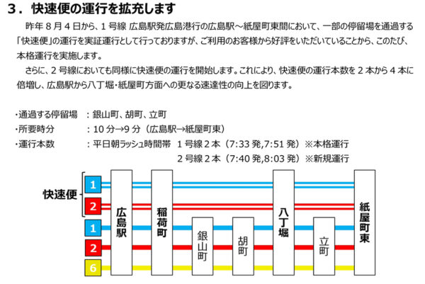 路面電車の「快速」本格運行はじめます 大幅増便&大型化で輸送力増強! 広電「新路線」開業でダイヤ改正