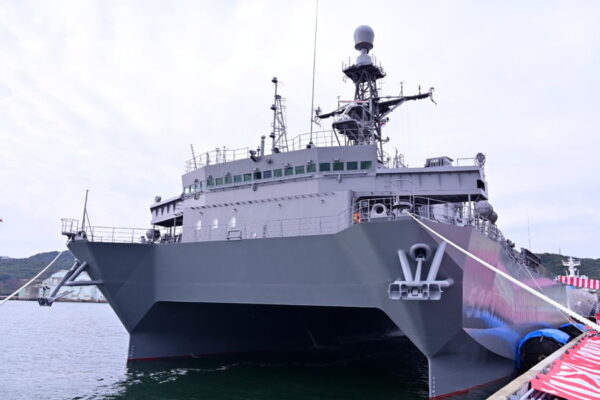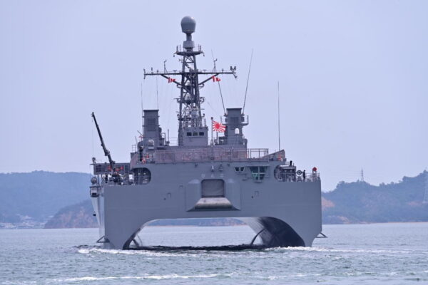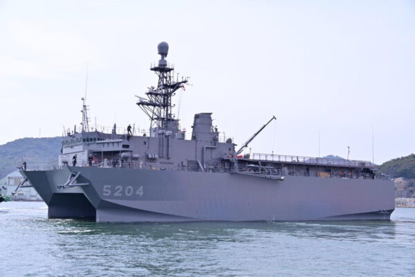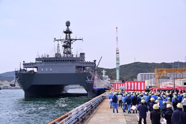 旧海軍でも採用ナシ! お値段200億円弱の非武装の自衛艦「びんご」就役 “異形の双胴船”に託された任務とは