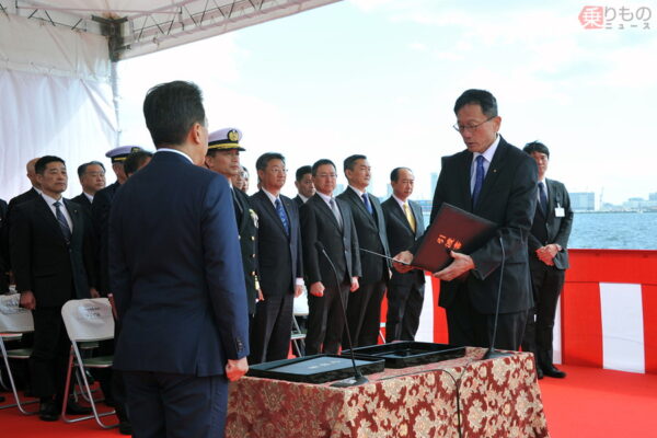 シャワー室にカーテン!? 女性も複数乗れる最新潜水艦「ちょうげい」就役! どこに配備? 読み込み中... 拡大画像 最新の潜水艦「ちょうげい」(画像:三菱重工) 拡大画像 2026年3月10日、三菱重工神戸造船所で行われた潜水艦「ちょうげい」引き渡しの様子。左手前が宮崎政久防衛副大臣、右奥が三菱重工の常務執行役員である江口雅之防衛・宇宙セグメント長(画像:三菱重工) 拡大画像 防衛省と三菱重工のあいだで取り交わされた潜水艦「ちょうげい」の引渡書と受領書(画像:三菱重工) 拡大画像 三菱重工神戸造船所を離岸し、横須賀へ向け出港する潜水艦「ちょうげい」(画像:三菱重工) 拡大画像 「ちょうげい」の艦尾に真新しい自衛艦旗を掲揚する乗員たち(画像:三菱重工) 関連記事 1tの塩!? 首都高の雪対策、ガチすぎて言葉を失った件 (PR)首都高速道路 イランの珍しい“双胴艦”も撃沈扱いに 米軍の攻撃を受け激しく炎上する様子が公開される 自衛隊がロシア海軍の「超静かな潜水艦」を確認! “ポッカリ浮上”して航行する姿を捉えた画像を防衛省が公開 「前が見えなくて危なくないの?」巨大タンカーの操縦室が“最後尾”にある理由 そびえ立つ高さの秘密とは 16年ぶりの新型! 自衛艦「あかし」就役 280億円で武装ゼロでも“超重要” どこに配備? この画像の記事を読む