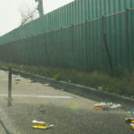 幹線道路の一角。信号待ちなどで渋滞が起きやすい場所や、ちょっと人目につきにくい場所などでは、ちょうど運転席のすぐ脇の金網に、ゴミのペットボトルがやたらと挿さっていたり「ゴミがゴミを呼ぶ」とばかりに、ゴミの不法投棄が重なり問題となるケースもあります。