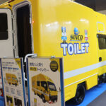 「ハイウェイテクノフェア2025」にて、シンコーハイウェイサービスのブースでいすゞの「エルフミオ」をベースとした移動トイレ車両が公開されました。