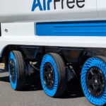 「エアフリー」は、空気充填の要らない、いわゆる「未来のタイヤ」として開発が進められている技術です。内部に空気を貯める必要がないため、サイドウォール(側面)がなく、代わりに無数のスポークで形状を保つ構造になっています。