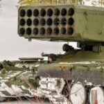 サーモバリック弾頭は、固体の化合物を気化させ、粉塵と強燃ガスの混合気体を作り出す気体爆薬で、「TOS-1」の発射機は直径220mmのサーモバリック弾頭ロケット弾を最大24発搭載し、連射することが可能です。