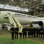 格納庫では、到着した乗客を多くのJAL社員が出迎え、ボーイング767にまつわる記念セレモニーが開催されました。