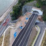 小松拡幅は、バイパス終点の大津市北小松から、さらに北の高島市勝野まで6.5km延長する事業です。今回はこのうち、北小松側の2.4km(14工区)が暫定2車線で開通します。事業名は「拡幅」ですが、現道に並行して新しい道路を新設。現道の渋滞ポイントである北小松交差点を避け、北小松トンネルを経て大津・高島市境の手前に至ります。