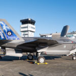 12月7日に宮崎県の航空自衛隊新田原基地において最新鋭戦闘機F-35B「ライトニング II」が展示され、その内の1機は機体の記念塗装機として、一部に軍用機らしからぬハデな模様でドレスアップされており、来場者の注目を集めました。