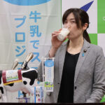 「鈴木農水大臣の意気込みに応えていくためにもですね、私も、あの、率先して、えー今日は牛乳を、飲まさせていただきたいと思います。これが牛乳です。じゃあ、これから飲みます」