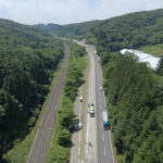 この事業は、岩手県一戸町の中山地区において2015年度から進められてきたものです。場所はIGRいわて銀河鉄道(旧東北本線)の奥中山高原駅付近で「国道4号最高地点(標高458m)」看板のある十三本木峠の北側。青森側からこの最高所へ続く長い上り坂(上り線)の途中に、1.2kmの付加車線が設けられます。