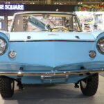 往年のスポーツカーでも、ド派手なカスタムカーでもない、どこか愛嬌のあるデザインをまとった水色のオープンカー。それは1963年(昭和38年)製のドイツ製水陸両用車「アンフィカー(Amphicar)770」です。