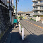 この区間は本郷台地の際にあたり、京浜東北線に向かって急激に下がっていく斜面に家屋が密集し、現状では拡幅の余地がありません。住宅街から通りに出る生活道路にも大きな高低差があります。